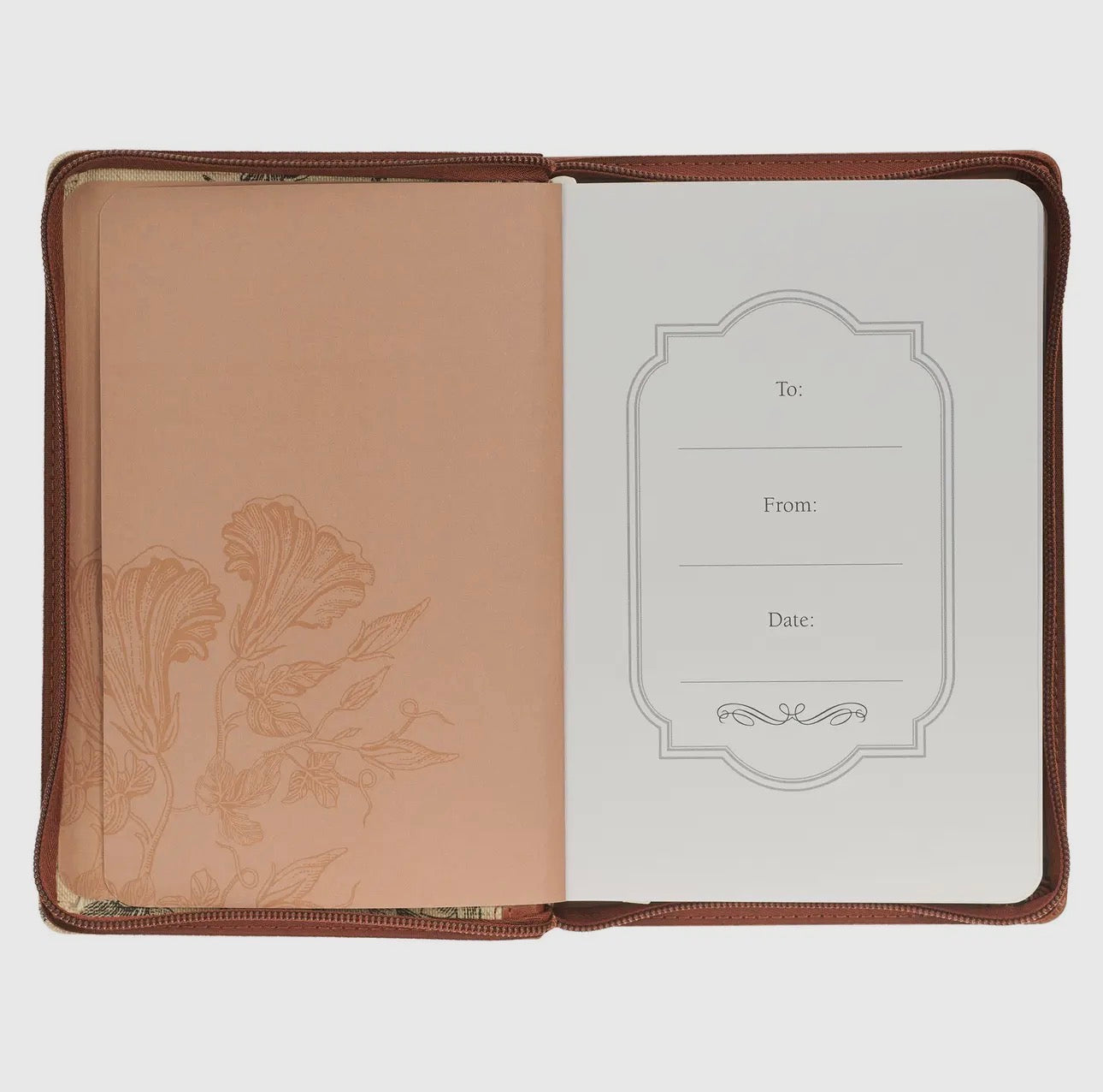 Embark on a journey of personal reflection and expression within the pages of the Amazing Grace Natural Canvas and Honey-brown Faux Leather Journal with Zipper Closure, and embrace the exquisite beauty of this floral-inspired journal.