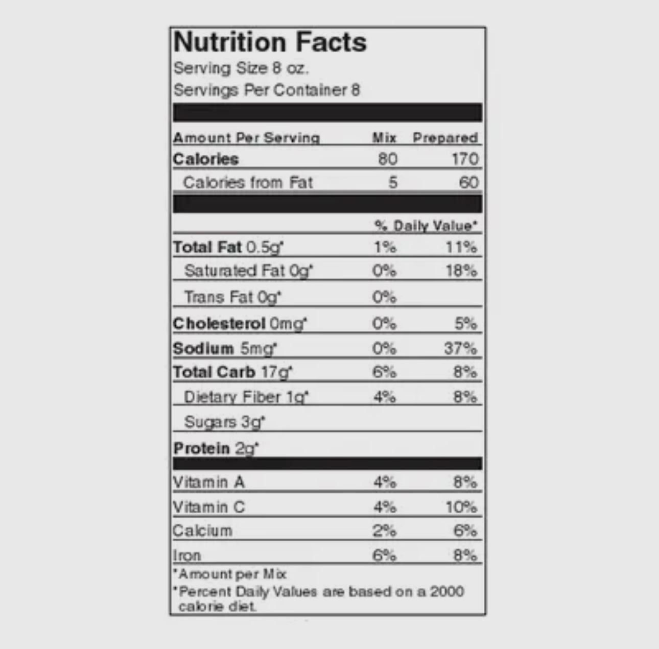 - Makes 8 servings per container