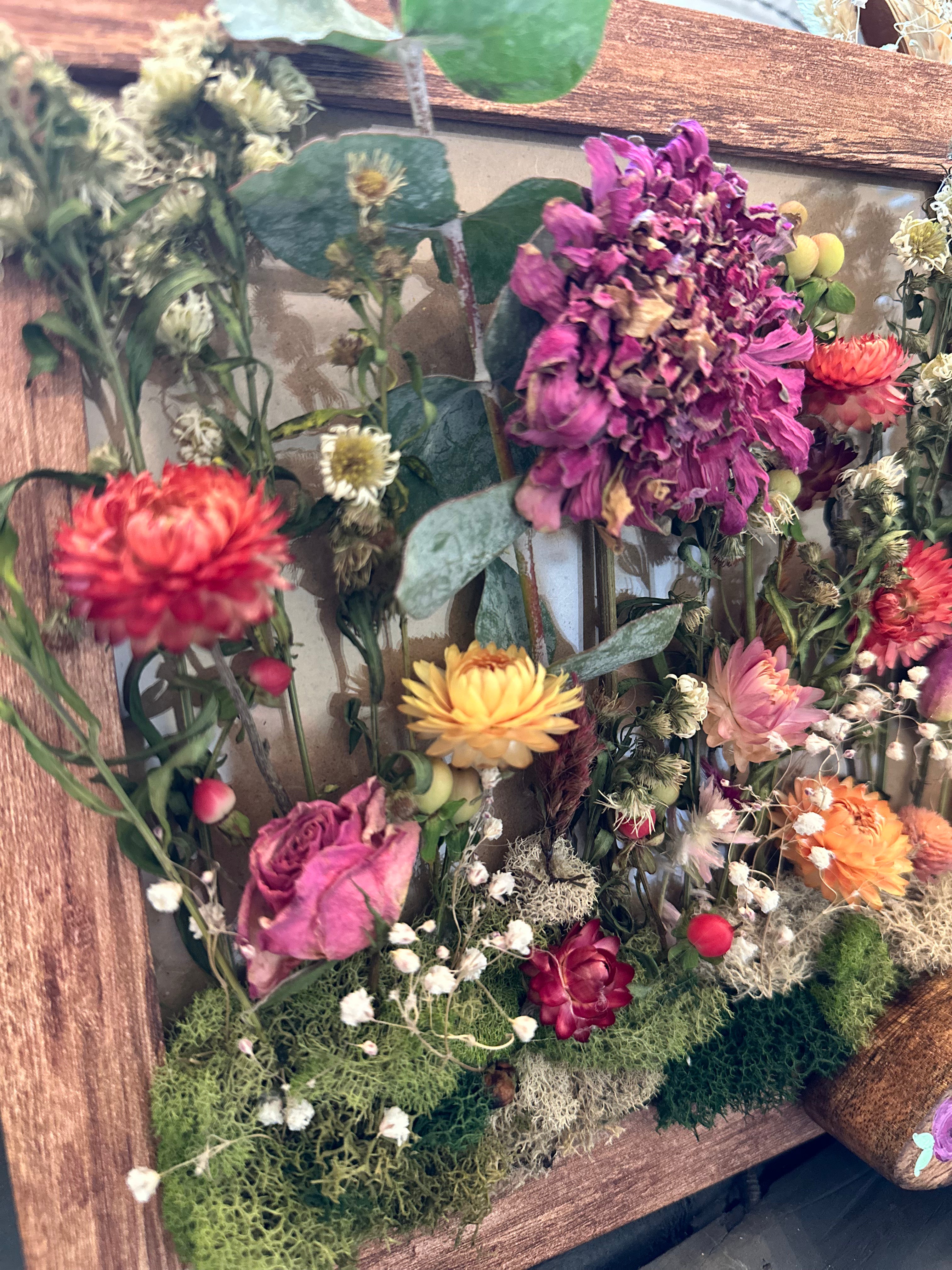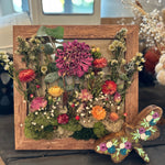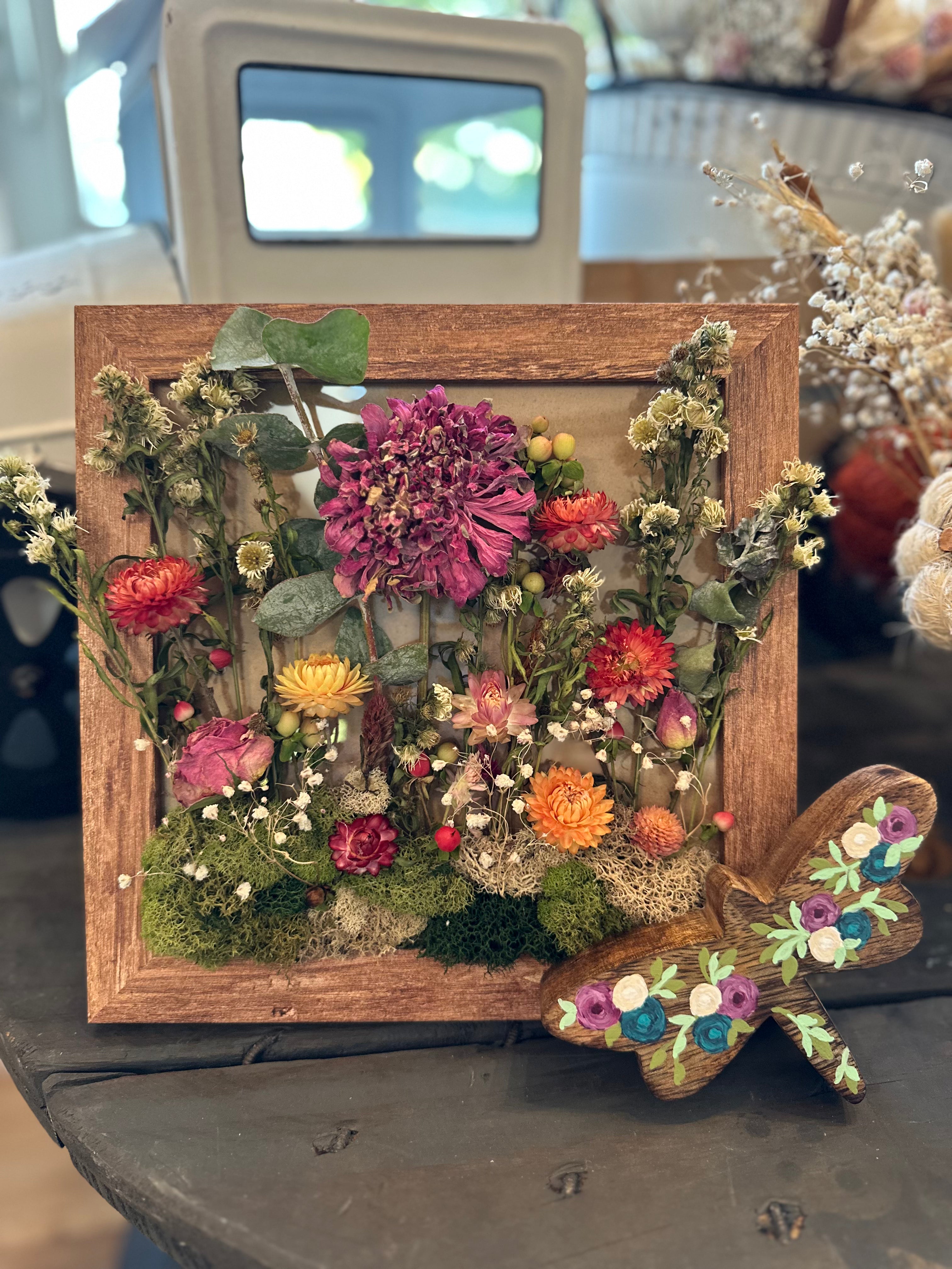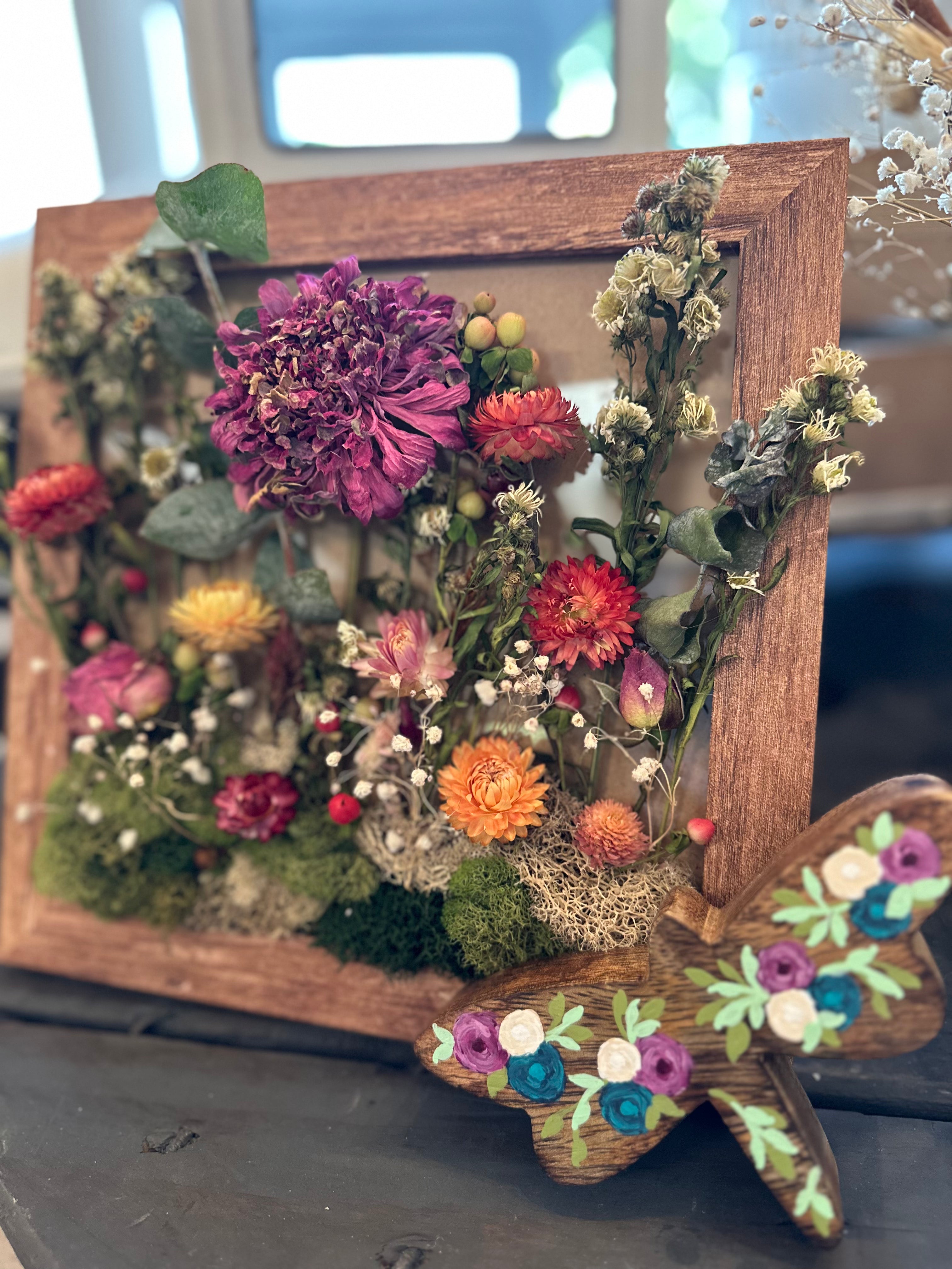 This is a new wood and glass floral design exclusively from Root 937. Each sign is handmade. Each sign is original and no two designs will be alike. These signs are designed around the florals used. The flowers will be seasonal, unless we have extra left over from the season. All frames are a special rustic beige blend exclusively from Root 937. The sign is made of wood that has natural knots and flaws, which we do not consider defects. These make great gifts as forever keepsakes.