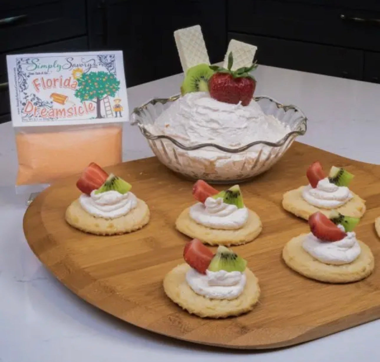 Florida Dreamsicle Dessert Mix combines flavors of Florida oranges and vanilla ice cream for a dreamy treat. Includes a recipe for tropical fruit pizza.