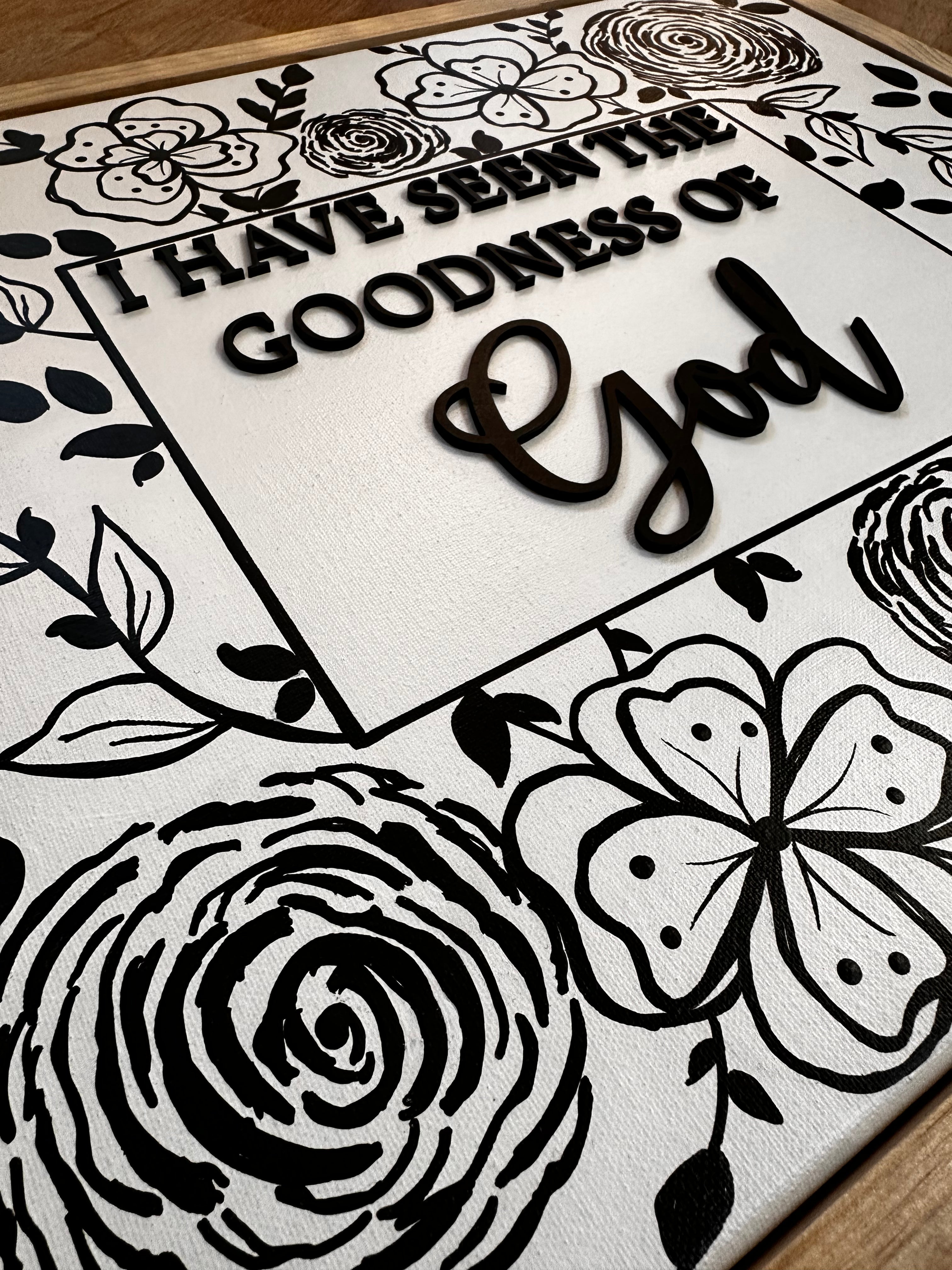 This is a new hand painted floral and 3D canvas sign designed exclusively from Root 937. Each sign will be hand painted, none will be exactly alike. Each sign is original and WILL BE MADE TO ORDER. No two designs will be alike. Each sign is hand drawn and painted, so the sizing of the florals and design elements will not be exactly like the picture, but will be painted as close as possible. All frames are a special rustic beige blend exclusively from Root 937. The sign is sealed for protection against environmental elements. Makes a great gift!