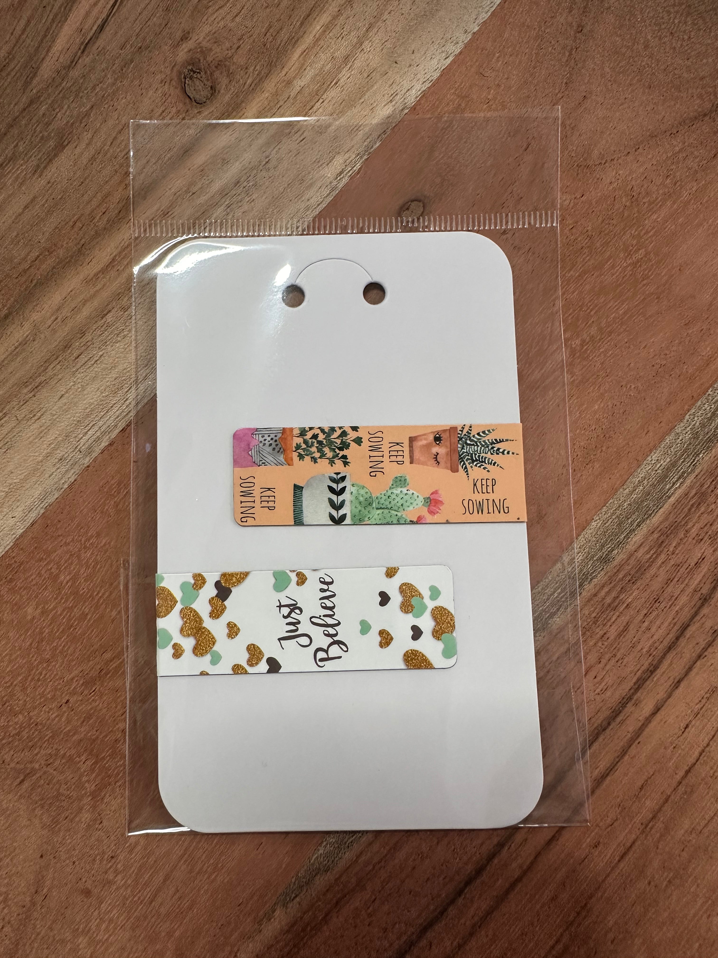 These cute paired magnetic bookmarks are perfect for saving your page in any book, notebook, or project. Choose from our several designed pairs.
