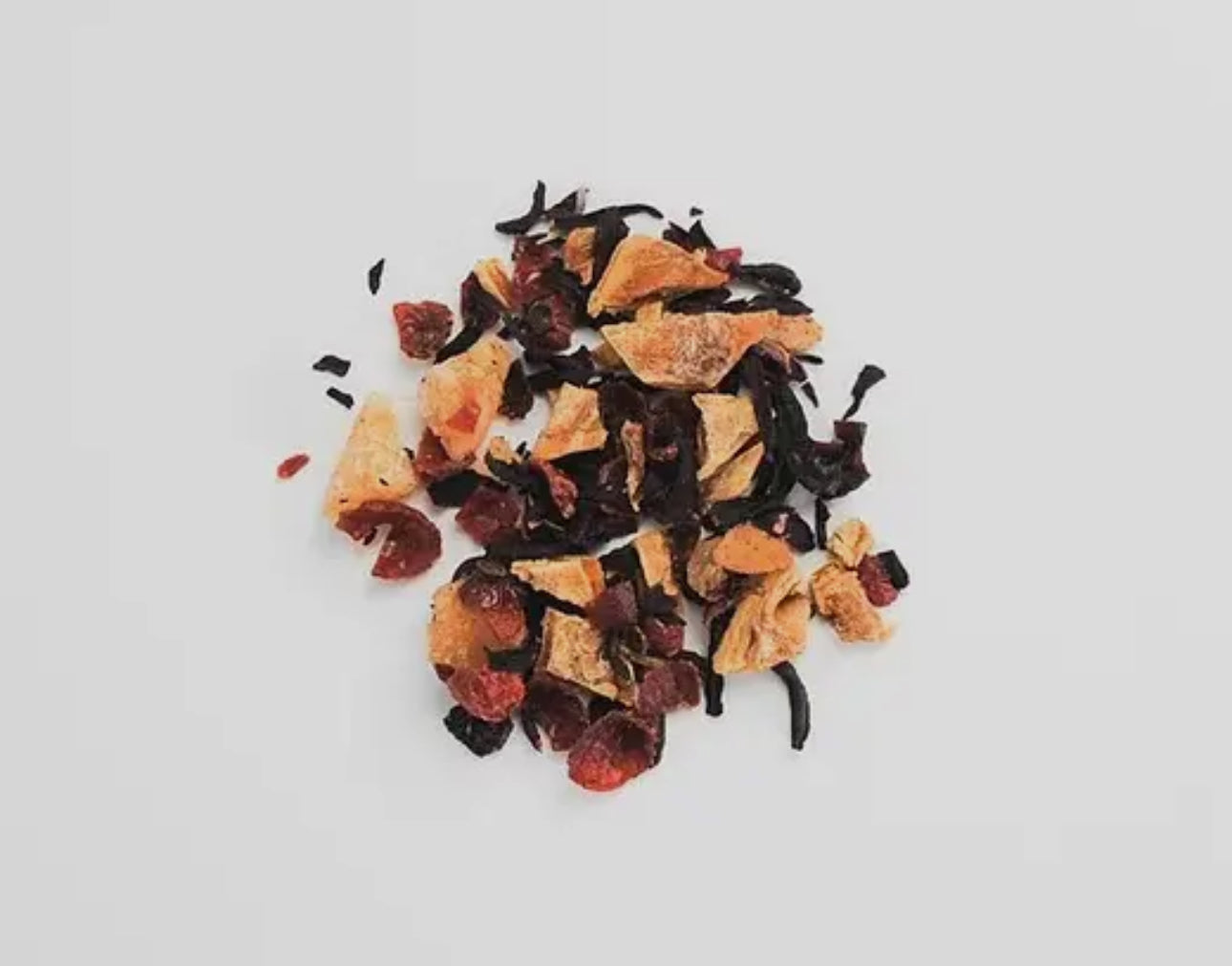 Mango Hibiscus Organic Herbs: Dried Mango, Hibiscus Flowers, Rose Hip, Crystalized Ginger (ginger, sugar cane).