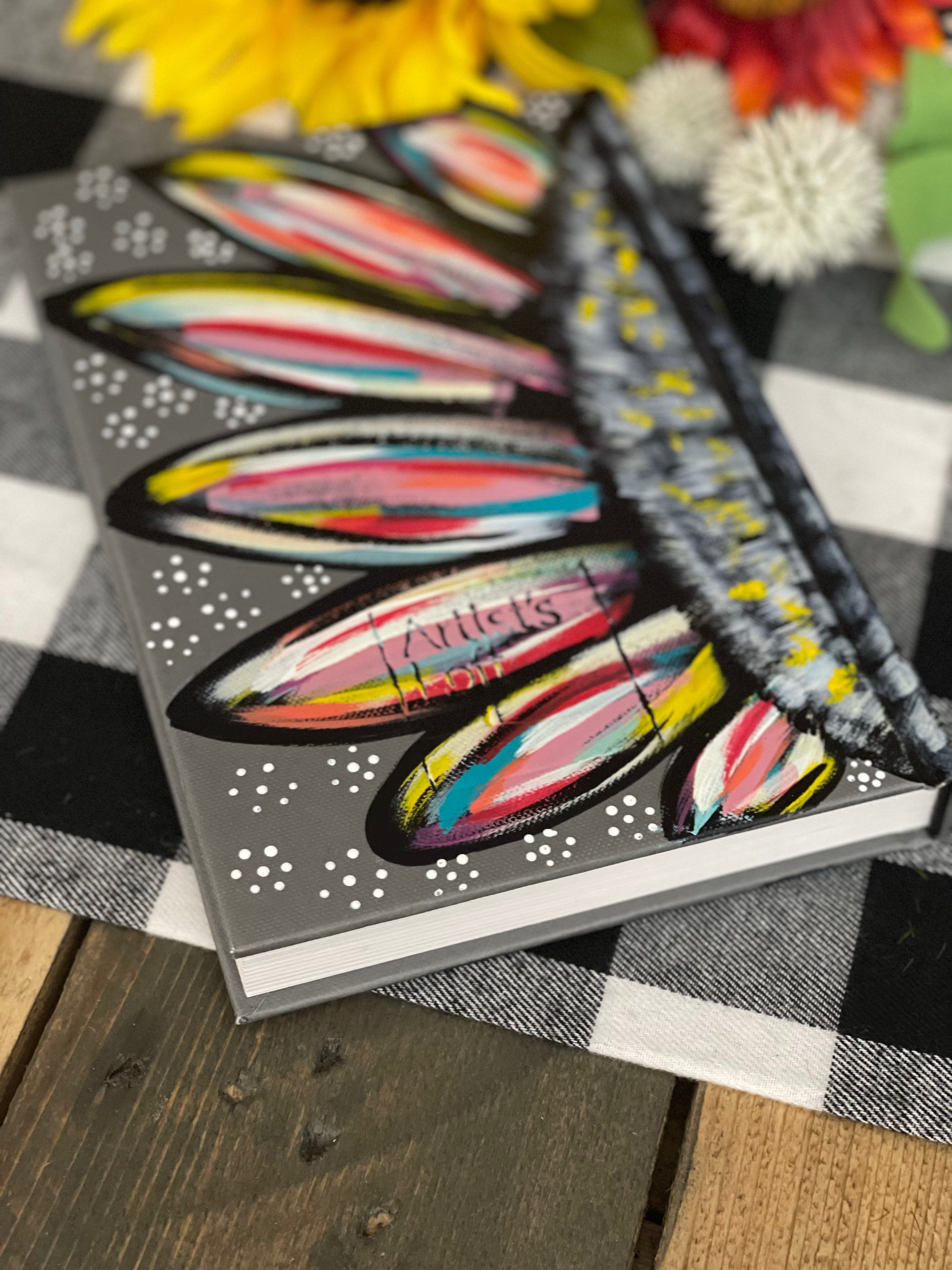 This is a new custom hand painted design exclusively from Root 937. We love to create designs and products that allow our customers to have several options to choose from. This hand painted book can be used as a journal or sketchbook. You can take notes, make appointments, jot down all your important information all in one place. Each design will be original and no two will be exactly alike. These make the perfect gift for all occasions!
