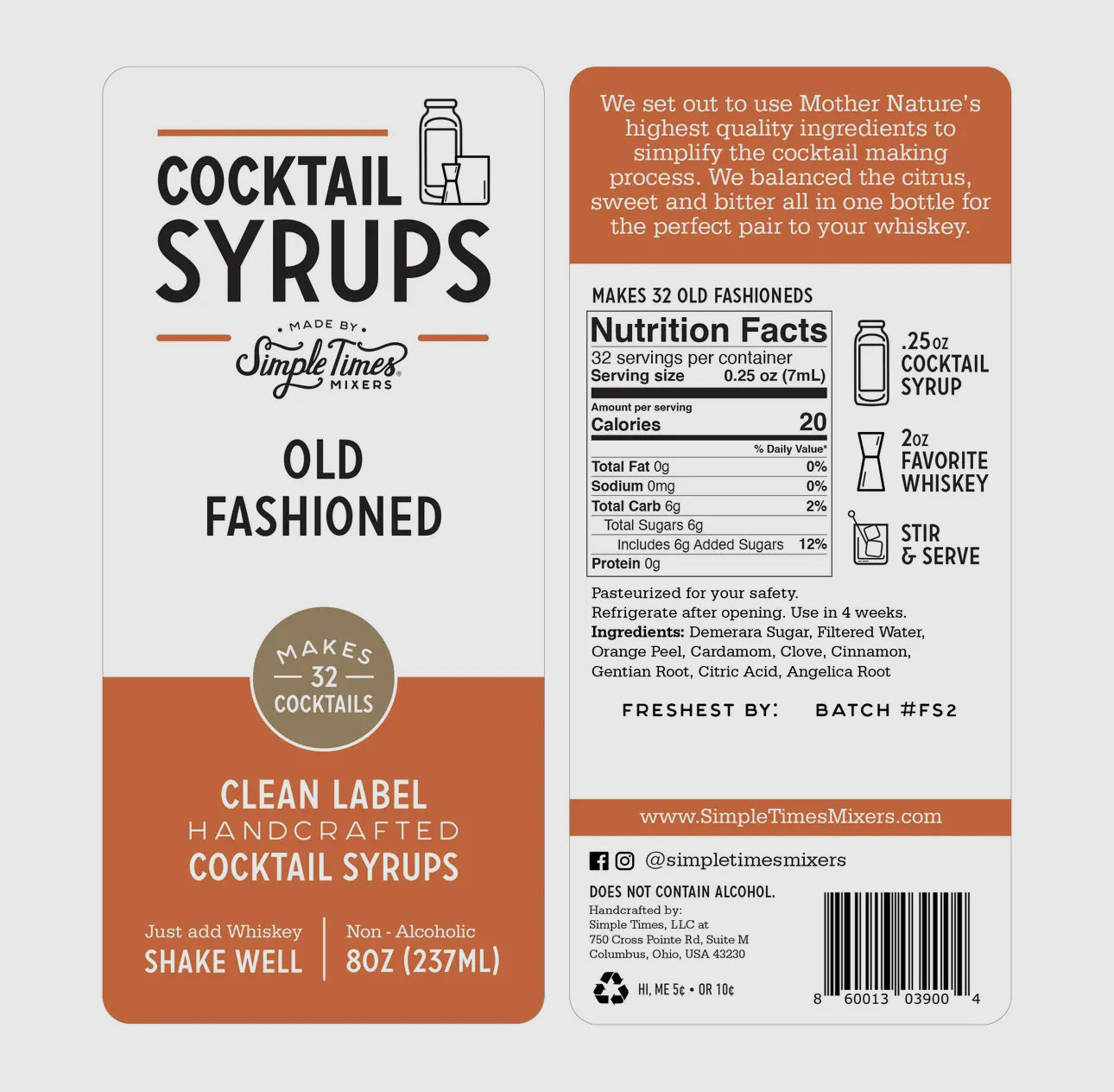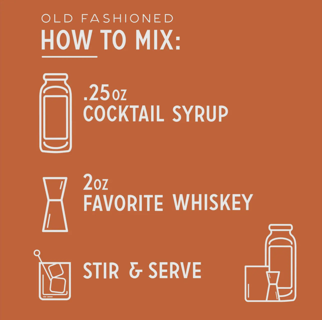 - Add .25 oz cocktail syrup to 2 oz favorite whiskey or bourbon, stir and serve.