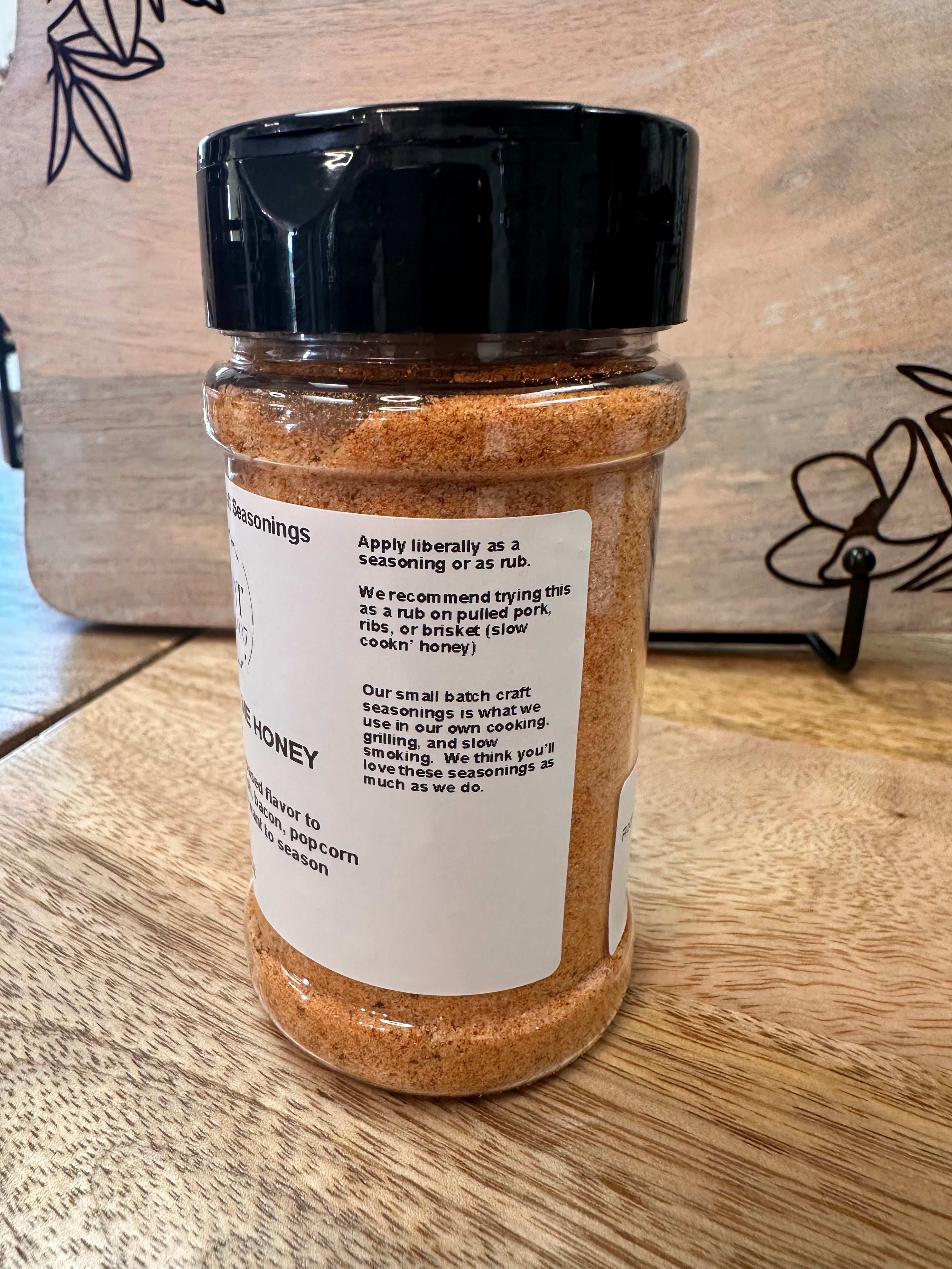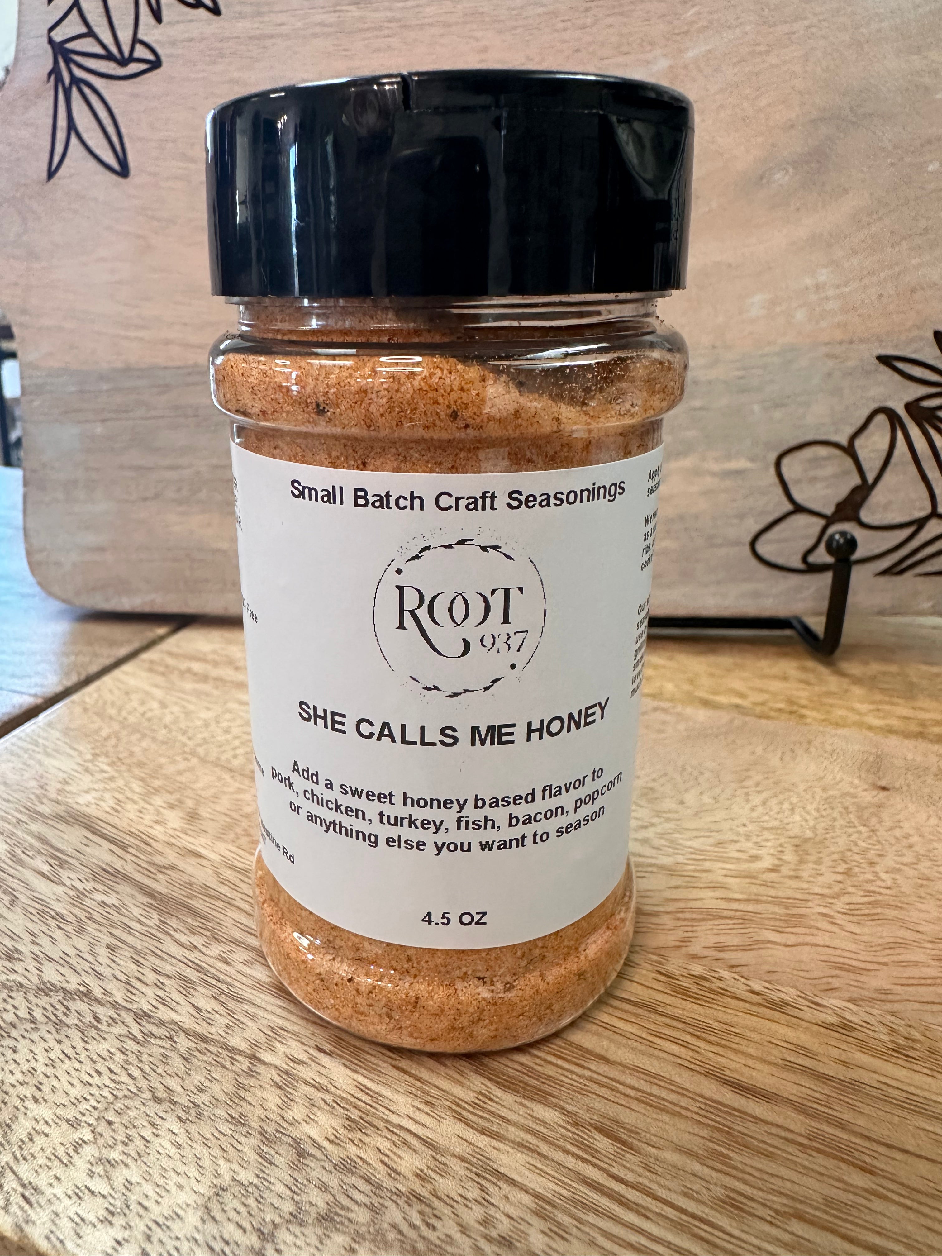 - She Calls Me Honey: Add a sweet honey based flavor to pork, chicken turkey, fish, bacon, popcorn or anything else you want to season