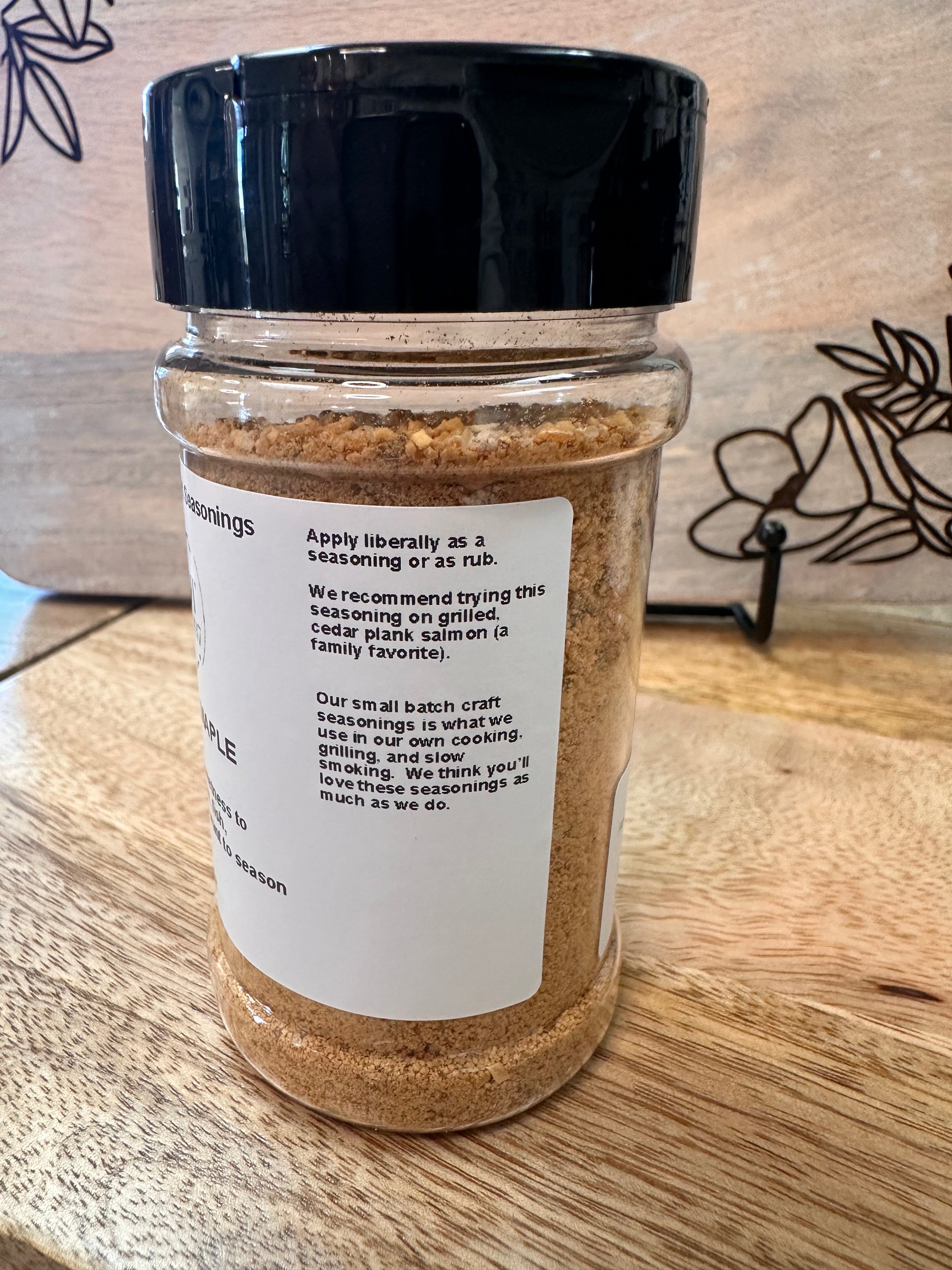 - Smokey Maple: Add a smoky sweetness to pork, chicken fish or anything you want to season