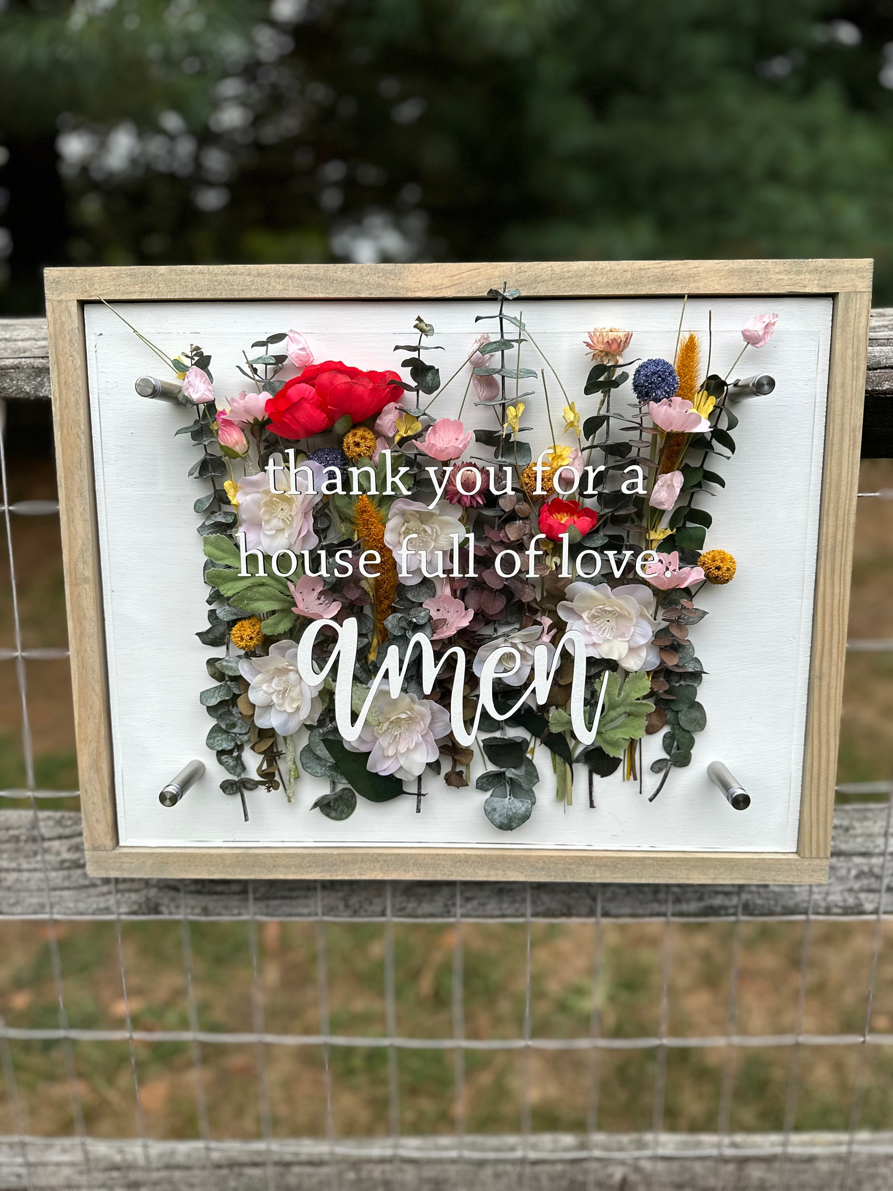 This is a new wood and acrylic 3D floral sign designed exclusively from Root 937. Each sign is hand made. Each sign is original and WILL BE MADE TO ORDER. No two designs will be alike. These signs are designed around the florals used. The flowers will be seasonal, unless we have extra left over from the season. All backing is made from maple wood. All frames are a special rustic beige blend exclusively from Root 937. The sign is made of wood that has natural knots and flaws, which we do not consider defects. If you would like to add your own saying, OR use dried flowers you have from a special occasion, please contact us via email to discuss a custom sign. These make great gifts as forever keepsakes!